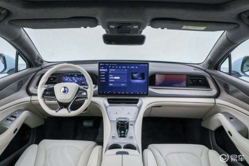 内饰方面,腾势N7搭载了六联屏,分别为 17.3、10.25、10.25英寸,AR-HUD,双侧智能风口显示屏。17.3英寸的屏幕分辨率是2K,所搭载的是高通高性能处理器,未来将会兼容“鸿蒙系统”。同时,新车内饰提供4个颜色可选,装饰件来自欧洲的杨木,通过复杂的工艺让木饰贴合在型面上。