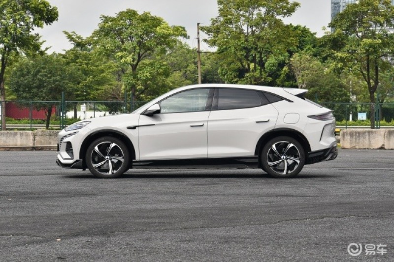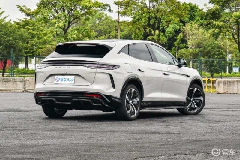 车身侧面,新车融入了当前流行的轿跑车元素,隐藏式门把手有助于降低风阻系数,提升效能。官方表示,腾势N7的车顶是黄金分割比例0.618:1的体现。新车采用贯穿式的腰线设计,从前到后非常流畅地延展,展现出优美的轮廓。新车的长宽高分别为:4860*1935*1602mm,轴距2940mm。