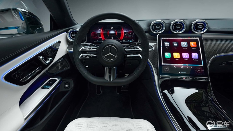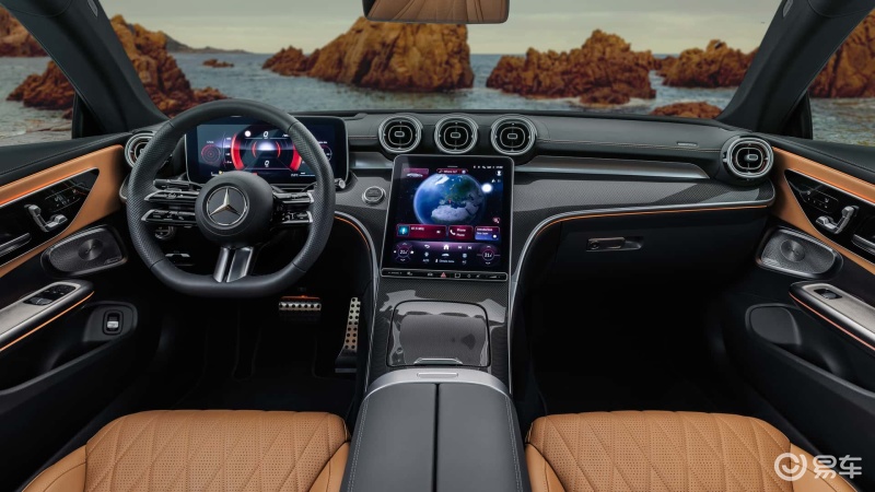 内饰方面,全新奔驰CLE采用了与奔驰C级相同的设计风格,一副”小S级“的既视感扑面而来。新车依然采用了以驾驶者为中心的内饰设计,中控屏和仪表台均向驾驶员一侧倾斜6度,便于驾驶者操作。新车搭载了12.3英寸全液晶数字仪表,中控台则配备了11.9英寸OLED触控屏,内部融入了第三代MBUX交互系统,采用全新升级的中央处理器统一运行MBUX智能人机交互系统、数字仪表屏、中央触控屏及平视显示系统,提高运算速度,令各系统联动更加迅捷。